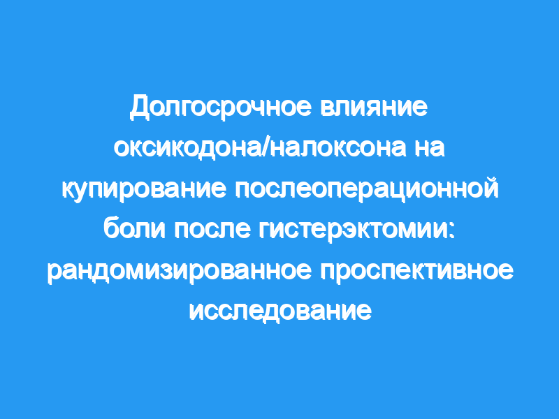 Анальгетическая эффективность оксикодона пролонгированного действия (PR) в сочетании с налоксоном PR (OXN) в послеоперационном обезболивании признана, однако в немногих исследованиях изучалась эффективность OXN в отношении облегчения боли и функции кишечника после гистерэктомии. В этом исследовании сравнивался эффект OXN по сравнению со стандартным лечением для послеоперационного обезболивания и функции кишечника после гистерэктомии.