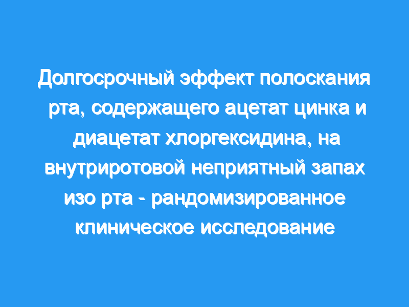 Оценить долгосрочное воздействие ополаскивателя для полости рта с ацетатом цинка и диацетатом хлоргексидина (Zn/CHX) на внутриротовой неприятный запах изо рта. Сорок шесть взрослых с внутриротовым неприятным запахом изо рта были рандомизированы в 6-месячное двойное слепое плацебо-контролируемое клиническое исследование. Наличие внутриротового неприятного запаха изо рта оценивали на исходном этапе, через 3 и 6 месяцев после лечения путем оценки органолептических показателей (OLS) и общих концентраций летучих соединений серы (T-VSC), сероводорода (H2s) и метилмеркаптана (ММ) в выдыхаемом воздухе.
