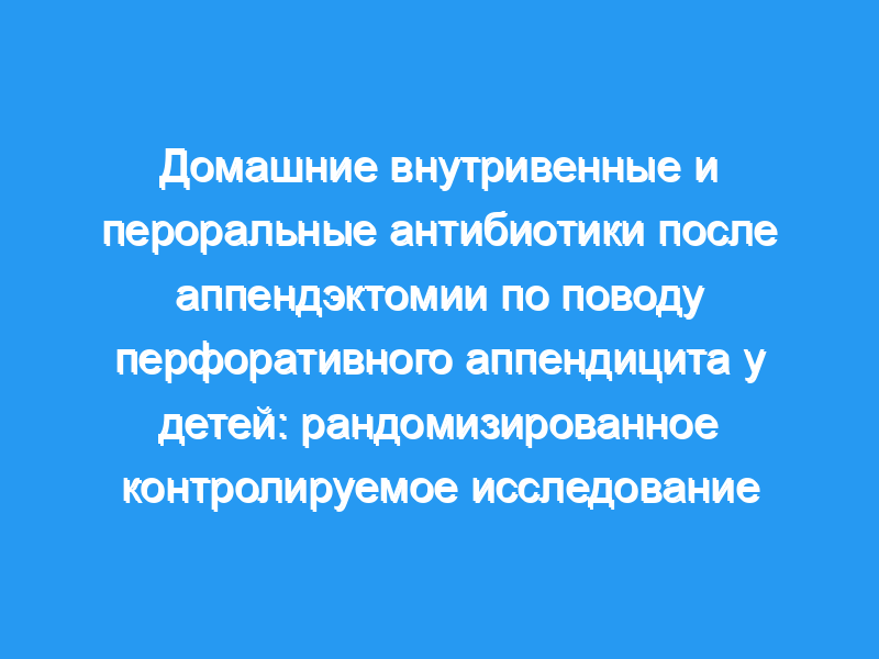 Сравнить влияние домашней внутривенной (в/в) и пероральной антибактериальной терапии на частоту осложнений и использование ресурсов после аппендэктомии по поводу перфоративного аппендицита.