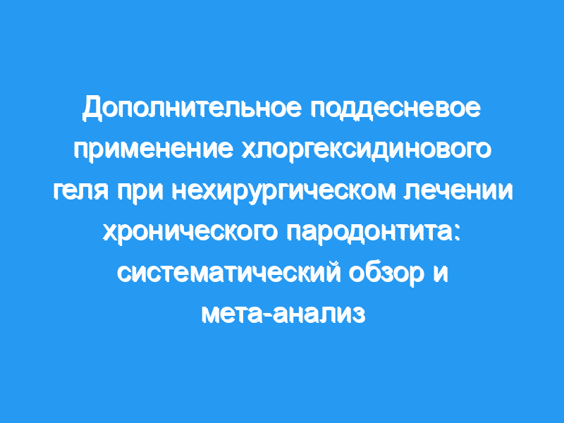 Поддесневые аппликации геля с хлоргексидином (CHX) обычно используются в качестве вспомогательного средства при нехирургическом лечении пародонта (NSPT) при хроническом периодонтите (ХП). Однако отсутствует систематический обзор и мета-анализ, подтверждающие влияние дополнительного геля CHX на клинические исходы. Целью этого мета-анализа была оценка эффективности дополнительного поддесневого введения геля CHX при NSPT по сравнению с только NSPT при ХП.