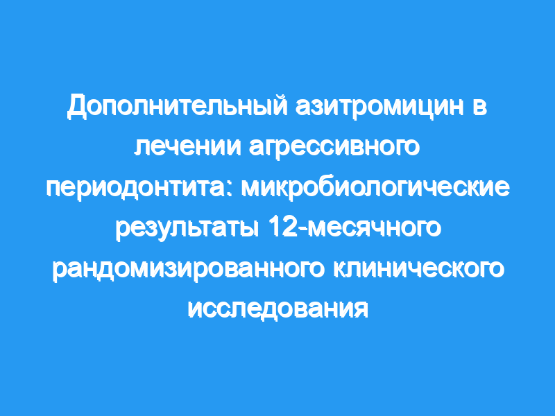 Азитромицин был неэффективен в снижении поддесневых уровней важных предполагаемых патогенов пародонта у молодых пациентов с АгП по сравнению с плацебо. Клиническое значение: Масштабирование и строгание корней с помощью дополнительного системного азитромицина обеспечивает незначительную дополнительную пользу по сравнению с плацебо в снижении основных патогенов поддесневого пародонта.< / p>