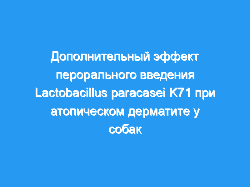 Атопический дерматит — распространенное кожное заболевание, встречающееся у собак. Глюкокортикоиды обычно рекомендуются для симптоматической терапии, а хорошо переносимая дополнительная терапия может помочь снизить необходимую дозу и связанные с этим риски хронического применения глюкокортикоидов. Гипотеза/цели: Целью данного исследования была оценка дополнительной эффективности перорального введения Lactobacillus paracasei K71 при атопическом дерматите (иБС) у собак. Животные: Сорок одна собака с иБС легкой и средней степени тяжести была набрана 19 ветеринарными больницами.