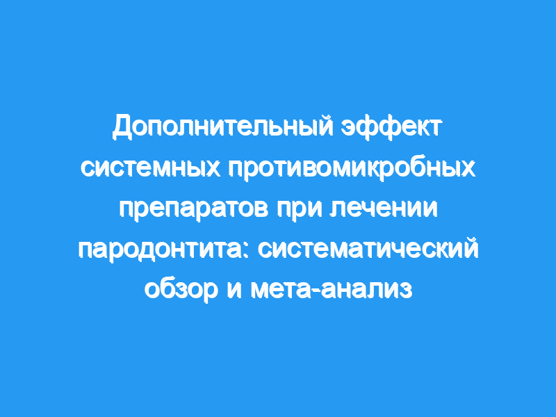 Дополнительное применение системных противомикробных препаратов в периодонтальной терапии приводит к статистически значимым преимуществам в клинических исходах, с более частыми нежелательными явлениями в тестовых группах, использующих системные противомикробные препараты.