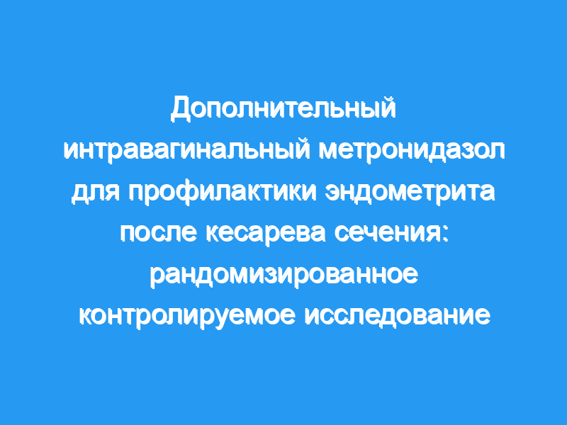 В это двойное плацебо-контролируемое рандомизированное исследование были включены пациентки с гестацией не менее 24 недель, перенесшие кесарево сечение по различным показаниям. Пациентки были рандомизированы для получения либо 5 г геля метронидазола интравагинально, либо соответствующего плацебо перед началом кесарева сечения. Всем пациентам была проведена хирургическая чистка брюшной полости, и большинство из них получали профилактические антибиотики после пережатия пуповины. Пациенты с хориоамнионитом и/или подозрением на аллергию на метронидазол были исключены. Для двухстороннего альфа 0,05 и бета 0,20 (80% мощности) требовалось 120 испытуемых в каждой группе. Основной переменной исхода была частота эндометрита после кесарева сечения. Вторичные переменные исхода включали наличие лихорадочной заболеваемости, раневую инфекцию, дни приема антибиотиков и продолжительность послеродовой госпитализации. Неонатальные исходы включали вес при рождении, баллы по шкале Апгар менее 7 через 5 минут, рН пупочной артерии менее 7,16, поступление и продолжительность пребывания в отделении интенсивной терапии новорожденных, а также продолжительность пребывания в больнице.
