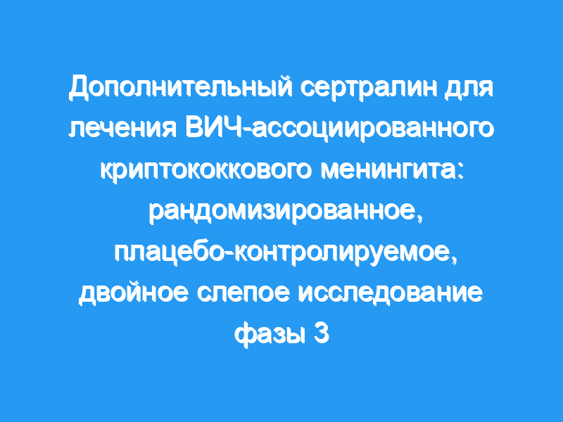В этом двойном слепом рандомизированном плацебо-контролируемом исследовании мы набрали ВИЧ-позитивных взрослых с криптококковым менингитом из двух больниц в Уганде. Участники были рандомизированы (1:1) для получения стандартной терапии с 7-14-дневным внутривенным введением амфотерицина В (0·7-1·0 мг/кг в день) и пероральный флуконазол (начиная с 800 мг/сут) с дополнительным сертралином или плацебо. Сертралин вводили перорально или через назогастральный зонд в дозе 400 мг/сут в течение 2 недель, затем 200 мг/сут в течение 12 недель, затем уменьшали в течение 3 недель. Первичной конечной точкой была 18-недельная выживаемость, проанализированная по намерению к лечению. Это исследование зарегистрировано в ClinicalTrials.gov , номер NCT01802385. Выводы: В период с 9 марта 2015 года по 29 мая 2017 года мы провели скрининг 842 пациентов с подозрением на менингит и зарегистрировали 460 из запланированных 550 участников, после чего исследование было прекращено из-за бесполезности. Три пациента в группе сертралина и три пациента в группе плацебо были потеряны для наблюдения и, следовательно, прекращены до окончания исследования. Через 18 недель 120 (52%) из 229 пациентов в группе сертралина и 106 (46%) из 231 пациента в группе плацебо умерли (отношение рисков 1·21, 95% ДИ 0·93-1·57 , p=0·15). Скорость выведения грибков из спинномозговой жидкости была одинаковой между группами (0·43 -log10 КОЕ/мл в день [95% ДИ 0·37-0·50 ] в группе сертралина против 0·47 -log10 КОЕ/мл в день [0·40-0·54 ] в группе плацебо, р=0·59), а также возникновение побочных эффектов 4 или 5 степени тяжести (72 [31%] из 229 против 75 [32%] из 231, р=0·98), большинство из которых были связаны с токсичностью амфотерицина В. Интерпретация: Сертралин не снижает смертность и не должен использоваться для лечения пациентов с ВИЧ-ассоциированным криптококковым менингитом. Причины отсутствия активности сертралина, по-видимому, являются многофакторными и могут быть связаны с недостаточной продолжительностью терапевтических концентраций сертралина. Финансирование: Национальный институт здравоохранения и Совет по медицинским исследованиям, Wellcome Trust.