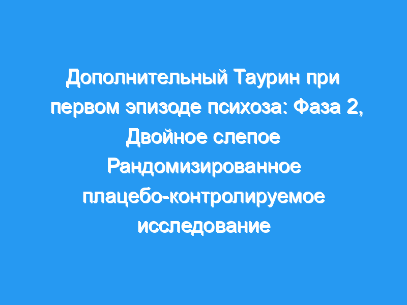 Дополнительный таурин не улучшал когнитивные способности, но, по-видимому, это улучшает психопатологию у пациентов с первым эпизодом психоза. Применение таурина требует дальнейшего изучения в более крупных рандомизированных исследованиях, особенно на ранних стадиях психоза. Пробная регистрация: ClinicalTrials.gov идентификатор: NCT00420823.