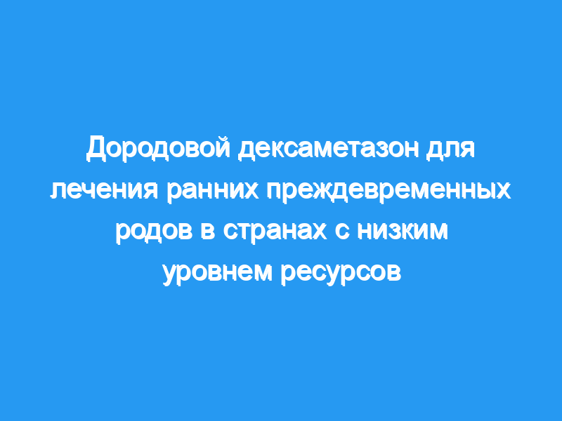 Среди женщин в странах с низким уровнем ресурсов, которые подвергались риску ранних преждевременных родов, применение дексаметазона приводило к значительно более низкому риску неонатальной смерти и мертворождения или неонатальной смерти, чем применение плацебо, без увеличения частоты возможной бактериальной инфекции у матери. (Финансируется Фондом Билла и Мелинды Гейтс и Всемирной организацией здравоохранения, Регистрационный номер клинических испытаний в Австралии и Новой Зеландии, ACTRN12617000476336, Регистрационный номер клинических испытаний в Индии, CTRI/2017/04/008326.). p>