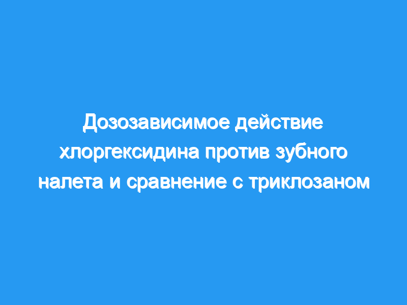 Целью этого исследования было определить реакцию дозы хлоргексидина на ингибирование образования зубного налета и использовать 0,1%-ное полоскание триклозаном в этом режиме.