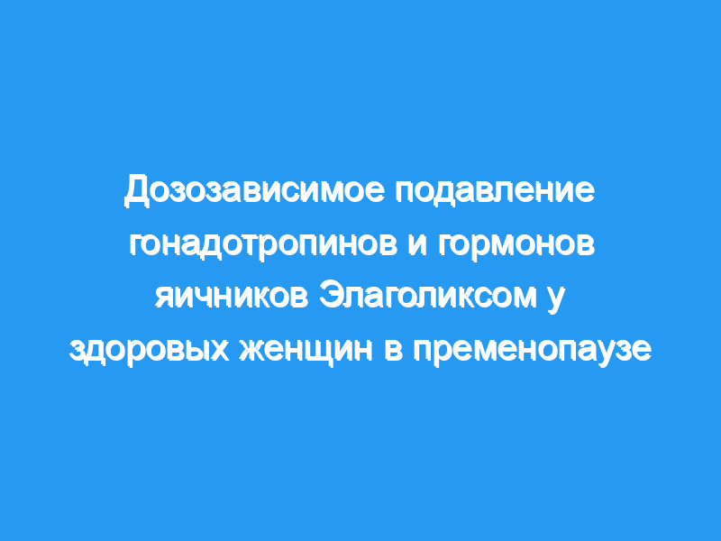 Введение Элаголикса позволяет модулировать концентрацию гонадотропина и гормонов яичников, от частичного подавления при более низких дозах до почти полного подавления при более высоких дозах. Результаты этого исследования дают обоснование для выбора дозы элаголикса для лечения заболеваний, зависящих от половых гормонов, у женщин.
