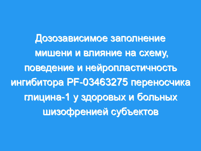 Ингибиторы глицинового транспортера-1 (GlyT1) могут ослаблять когнитивные нарушения, связанные с шизофренией. Дозозависимое заполнение и целевое воздействие ингибитора GlyT1 PF-03463275 были изучены для обоснования выбора оптимальной дозы для клинического исследования когнитивных нарушений, связанных с шизофренией.