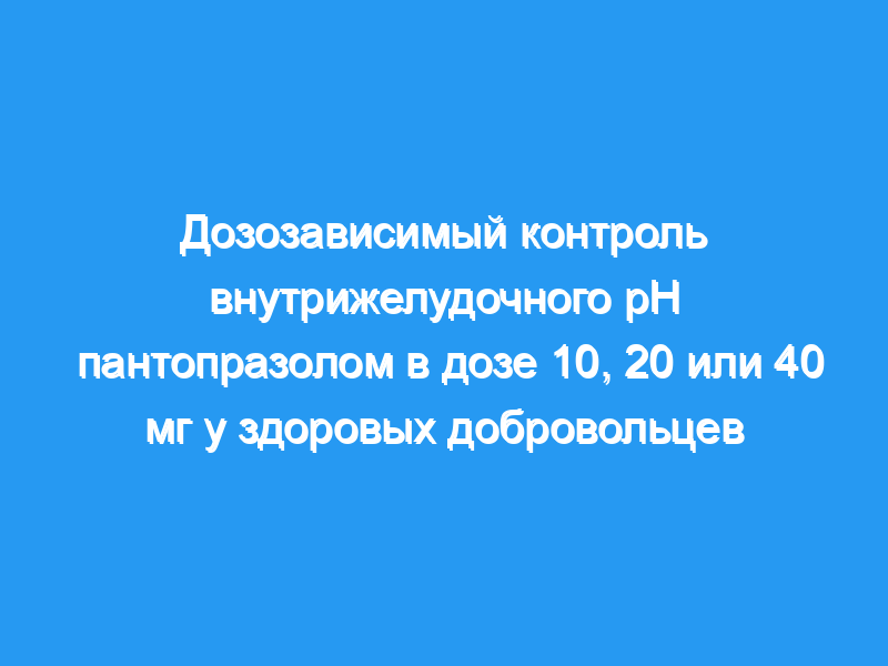 Оценить влияние пантопразола в дозах 10, 20 и 40 мг один раз в день на кислотность желудочного сока у здоровых добровольцев.
