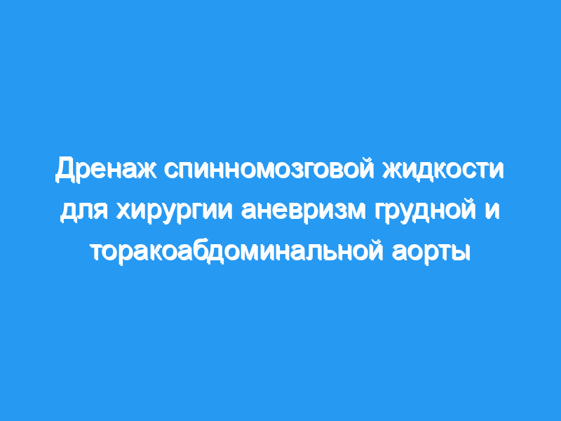 Во время операции по удалению аневризмы аорты перекрестное пережатие может привести к недостаточному кровоснабжению спинного мозга, что приведет к неврологическому дефициту. Дренаж спинномозговой жидкости (CSFD) может увеличить перфузионное давление в спинном мозге и, следовательно, снизить риск ишемического повреждения спинного мозга.