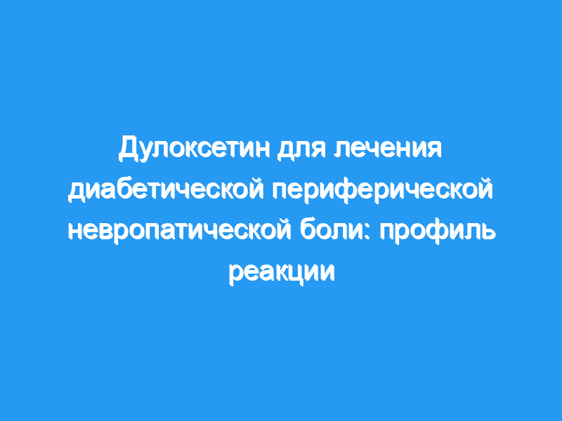 В текущем анализе изучается профиль ответа у пациентов, получающих дулоксетин для лечения диабетической периферической невропатической боли (DPNP). Пациенты/дизайн: Данные были объединены из трех двойных слепых рандомизированных плацебо-контролируемых 12-недельных исследований острой терапии пациентов с ДПНП продолжительностью не менее 6 месяцев. В исследовании 1 (N = 457) были группы лечения дулоксетином в дозе 20 мг один раз в день (QD), 60 мг QD, 60 мг два раза в день (BID) и плацебо, в исследованиях 2 (N = 334) и 3 (N = 348) сравнивали дулоксетин в дозе 60 мг QD и 60 мг BID с плацебо.. Основным показателем эффективности в каждом исследовании был недельный средний балл средней тяжести боли за 24 часа. Ответ на лечение был определен как снижение тяжести боли на 30%, хотя некоторые анализы были повторены с использованием альтернативных критериев ответа (снижение тяжести боли на 50% или на 2 балла).