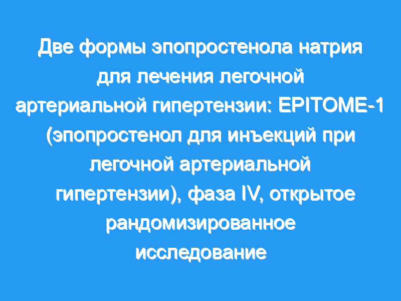 В этом проспективном многоцентровом открытом рандомизированном исследовании IV фазы пациенты, не принимавшие эпопростенол, нуждающиеся в инъекционной терапии простаноидами, были рандомизированы 2:1, чтобы открыть- маркируйте эпопростенол АМ или эпопростенол ГМ. Период исследования составил 28 дней, за которым последовало 30-дневное наблюдение за безопасностью. Целью исследования было подробное сравнение безопасности, переносимости, уровней метаболитов препарата и лечебных эффектов эпопростенола АМ и эпопростенола ГМ при ЛАГ. Статистический анализ носил описательный характер только из-за исследовательского характера исследования.
