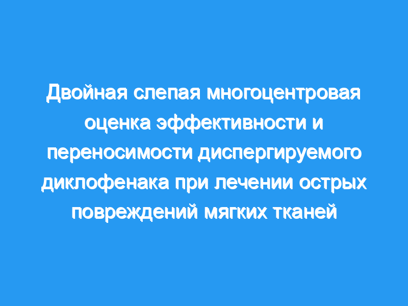 В рандомизированном двойном слепом многоцентровом исследовании с параллельными группами эффективность и переносимость диспергируемого диклофенака сравнивались с плацебо при лечении острых повреждений мягких тканей.