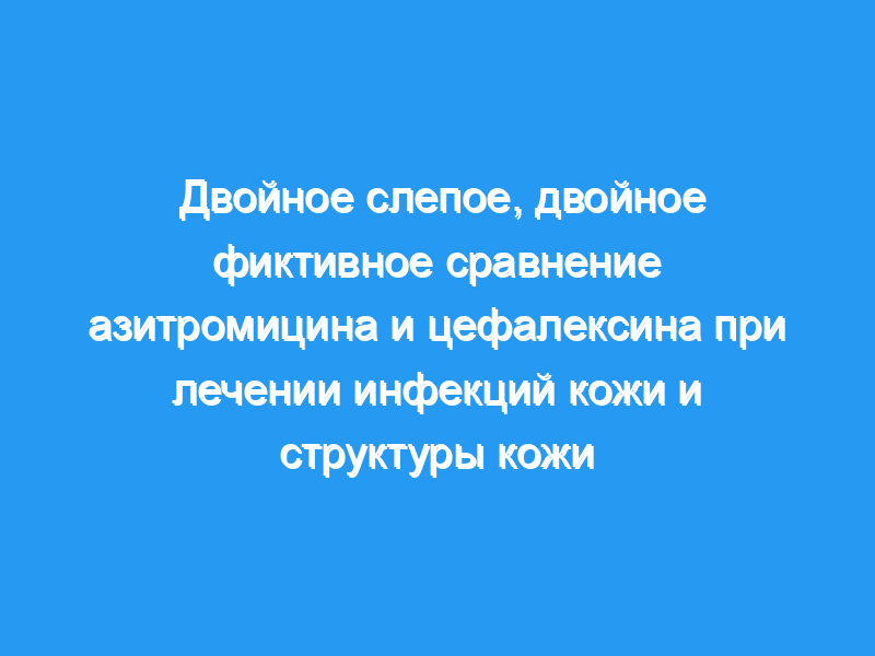 В этом двойном слепом рандомизированном исследовании, проведенном в 22 центрах США, азитромицин, назначаемый в течение пяти дней один раз в день (500 мг в 1-й день, 250 мг в 2-5-й дни), сравнивался с цефалексином (500 мг внутривенно.) назначается в течение десяти дней при лечении пациентов с инфекцией кожи и структуры кожи.