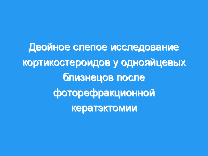 Целью этого исследования было оценить использование различных режимов послеоперационного применения кортикостероидов после 193-нанометровой эксимерной ФРК у однояйцевых близнецов.