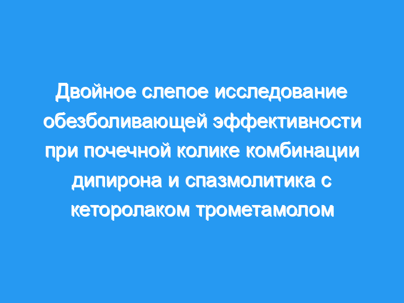 Мы провели двойное слепое исследование у 34 пациентов для сравнения обезболивающей эффективности при острой почечной колике с использованием 2,5 г дипирона в сочетании со спазмолитиком и 30 мг кеторолака трометамина, разведенного в 100 мл физиологического раствора и введенного внутривенно.