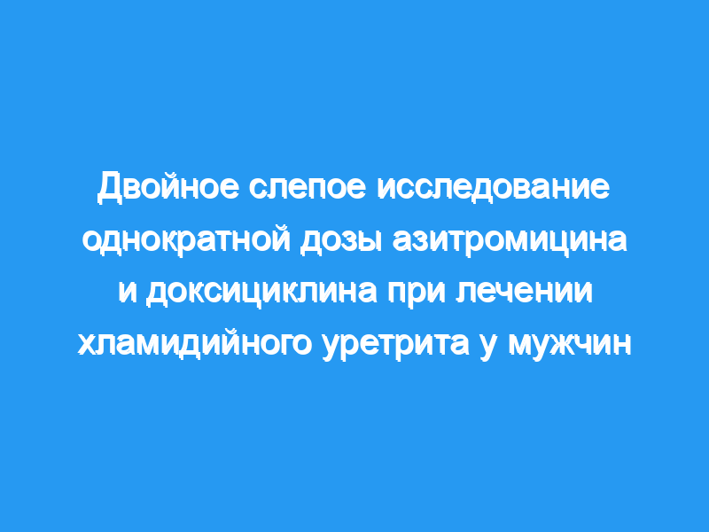Сравнить эффективность и безопасность азитромицина и доксициклина при лечении мужчин с неосложненным уретритом, вызванным chlamydia trachomatis. Дизайн: Многоцентровое двойное слепое рандомизированное исследование лечения. Субъекты: 130 амбулаторных пациентов мужского пола с клиническими признаками и симптомами уретрита.