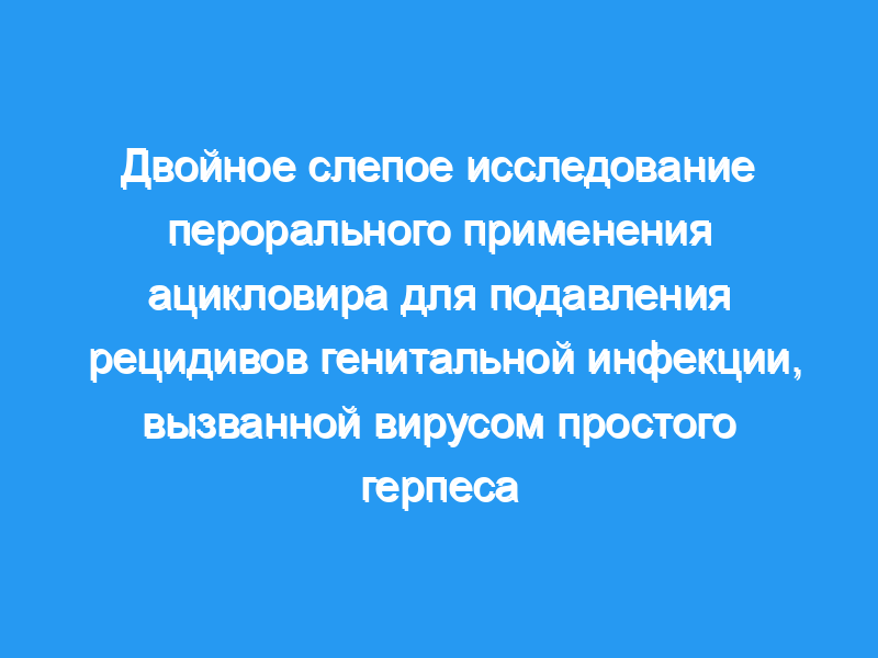 Мы пришли к выводу, что пероральный прием ацикловира в течение четырех месяцев заметно уменьшает, но не полностью предотвращает рецидивы генитального герпеса и не влияют на долгосрочную естественную историю заболевания.