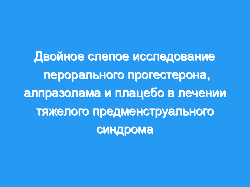 Амбулаторная программа медицинского лечения PMS в отделении акушерства и гинекологии Университетской больницы. Субъекты: Среди добровольцев для лечения ПМС было оценено 444 человека, и 185, отвечающих определенным критериям ПМС, были рандомизированы для лечения, данные о лечении доступны для 170. Отказов от лечения в связи с нежелательными явлениями не было. Вмешательство: Протокол двойного слепого исследования, в котором перорально вводили 300 мг микронизированного прогестерона, 0,25 мг алпразолама или плацебо четыре раза в день с 18-го дня менструального цикла по 2-й день следующего цикла, включая taper. Средняя суточная доза при третьем лечении составляла 1760 мг прогестерона или 1,5 мг алпразолама. Испытуемые были рандомизированы для кратких (< 20 минут) или длительных (50 минут) посещений. Основные показатели результатов: Ежедневный отчет о симптомах (DSR), оцениваемый по общему количеству симптомов DSR, четыре фактора DSR.