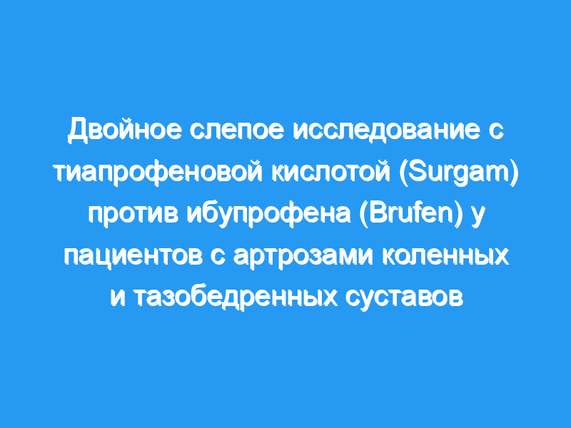 60 пациентов с остеоартритом бедер или колен были отобраны для нашего рандомизированного двойного слепого исследования, в котором сравнивались эффективность и безопасность двух производных пропионовой кислоты тиапрофеновой кислоты (суточная доза 600 мг) и ибупрофена (суточная доза 1200 мг) в течение 21 дня.