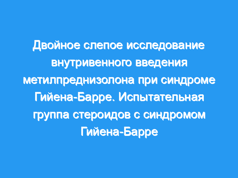 Мы оценили пользу режима приема высоких доз стероидов в большой выборке пациентов с СГБ в многоцентровом рандомизированном исследовании., двойное слепое исследование.