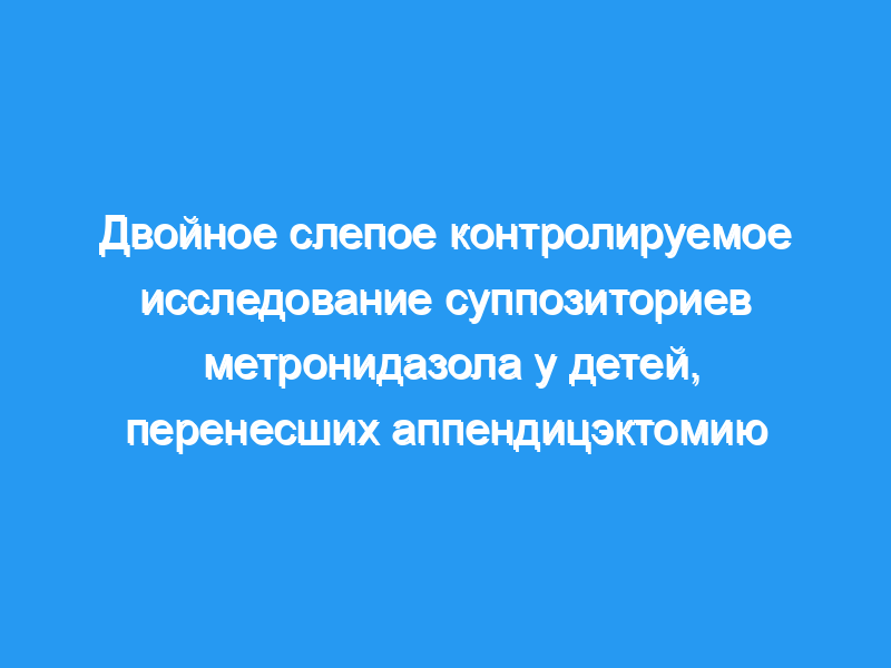 В общей сложности 133 ребенка в возрасте от 16 месяцев до 15 лет (в среднем 6,7 года) с предполагаемым острым аппендицитом были включены в двойное слепое плацебо-контролируемое исследование кратковременного (72 часа) применения суппозиториев метронидазола в качестве профилактики послеоперационной инфекции.