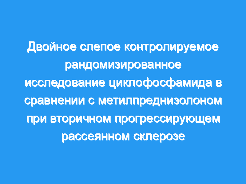 Терапевтические возможности ограничены при вторичном прогрессирующем рассеянном склерозе (СПМС). Открытые исследования показали эффективность ежемесячного внутривенного введения циклофосфамида (CPM) без индукции для замедления прогрессирования, но до сих пор не проводилось рандомизированного исследования.
