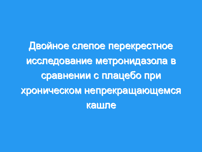 Чтобы проверить гипотезу о том, что метронидазол (400 мг трижды в день в течение семи дней) не лучше плацебо снижает частоту стула при хроническом непрекращающемся кашле, было проведено двойное слепое плацебо-контролируемое перекрестное исследование..
