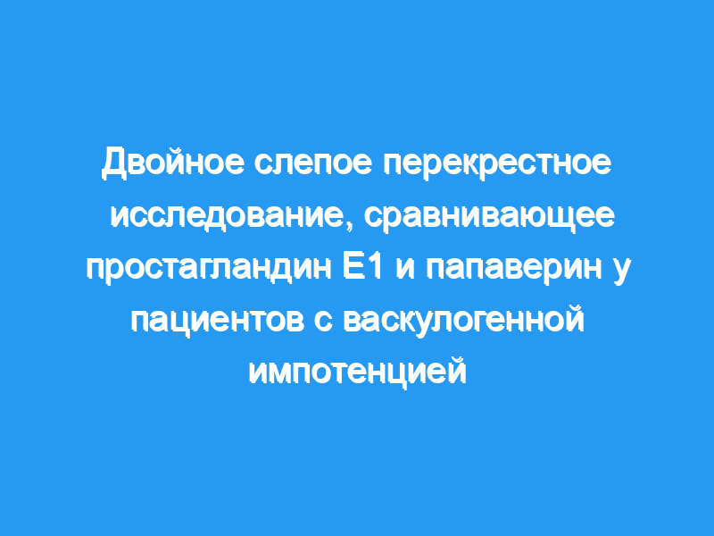 в общей сложности 54 пациентам с васкулогенной импотенцией вводили внутрикорпоральный простагландин Е1 (20 мкг) и внутрикорпоральный папаверин (60 мг), рандомизированные двойным слепым методом, с опозданием более чем на неделю.