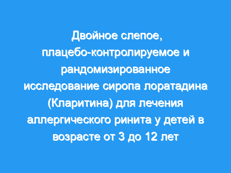 Цель этого двойного слепого плацебо-контролируемого исследования Параллельное рандомизированное исследование было посвящено оценке эффективности и безопасности сиропа лоратадина для лечения детей в возрасте от 3 до 12 лет с аллергическим ринитом.