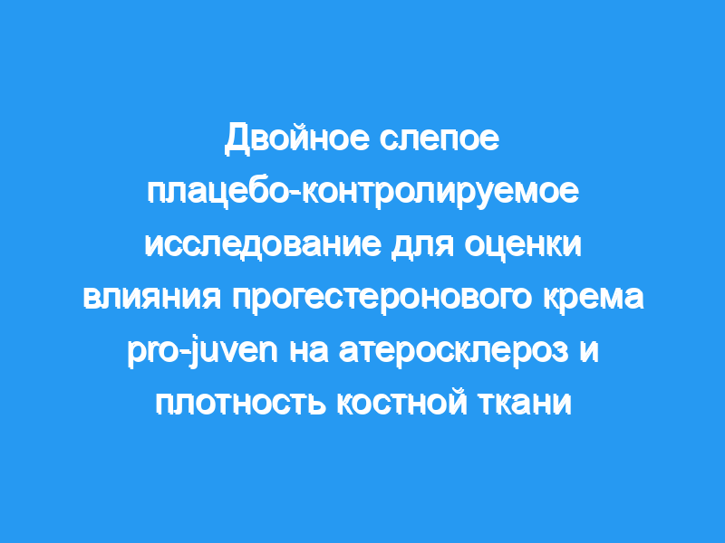 Женщины были случайным образом распределены для получения крема с прогестероном pro-juven по 20 мг два раза в день или плацебо в течение трех лет. Основной результат — измерение скорости изменения толщины бляшек, толщины интима-медиа и плотности костной ткани поясничного отдела позвоночника и шейки бедра.