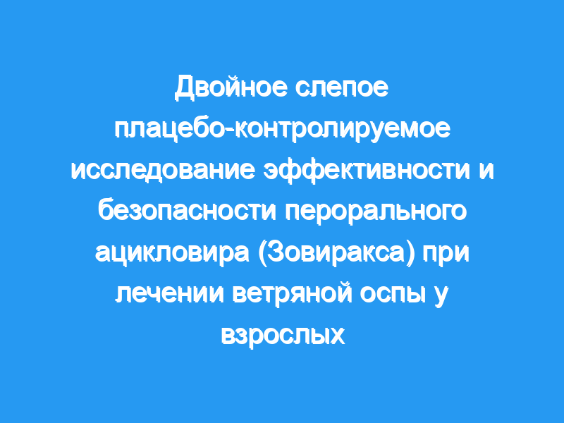 Было проведено двойное слепое плацебо-контролируемое исследование перорального применения ацикловира у здоровых в остальном иммунокомпетентных молодых людей с ветряной оспой.
