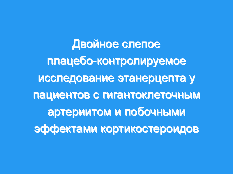 Открытые исследования показали, что антагонисты фактора некроза опухоли (TNF) приводили к стойкому улучшению и кортикостероидосберегающему эффекту у пациентов с гигантоклеточным артериитом (GCA). Чтобы подтвердить эти наблюдения, мы провели рандомизированное двойное слепое плацебо-контролируемое исследование с применением этанерцепта у пациентов с подтвержденной биопсией ГКА с побочными эффектами, вторичными по отношению к кортикостероидам.