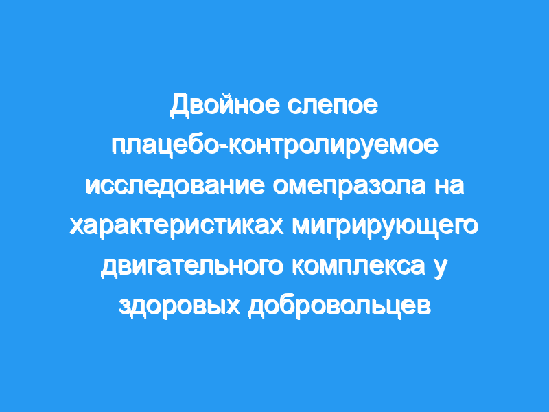 Целью исследования было изучение возможного влияния омепразола на характеристики мигрирующего двигательного компонента.