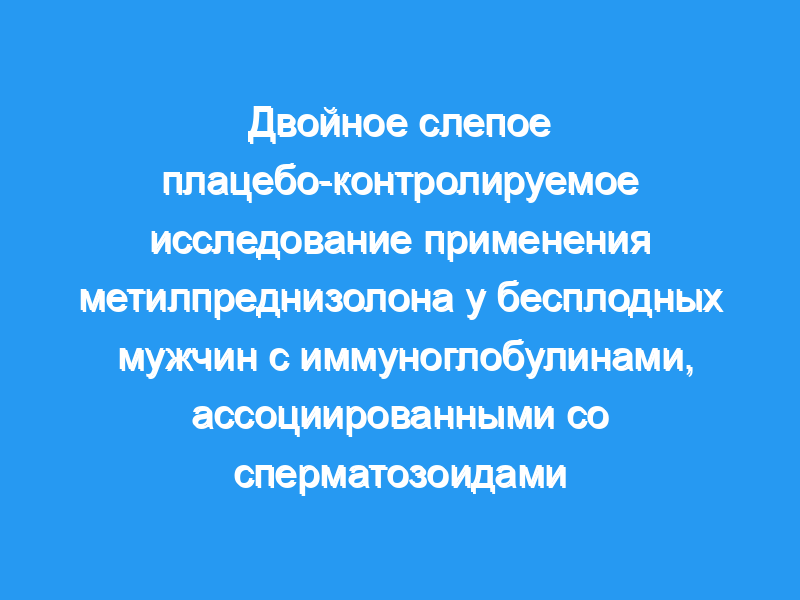 Сорок три мужчины с бесплодием, опосредованным антителами, выявленным путем измерения иммуноглобулина, связанного со сперматозоидами, с помощью прямого радиоактивно меченого антиглобулинового анализа, были включены в двойной слепой плацебо-контролируемый протокол для оценки эффективности кортикостероидов в этом состоянии.