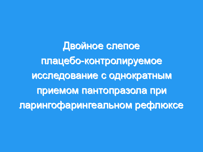 Реакция была сходной между однократной дозой пантопразола и плацебо при впервые диагностированном ЛПР. Наши результаты показали, что исследование гортани не было полезным для определения ответа на лечение. Гипофарингеальный рефлюкс может представлять собой кислотный рефлюкс или артефакты, но вряд ли является основной причиной.