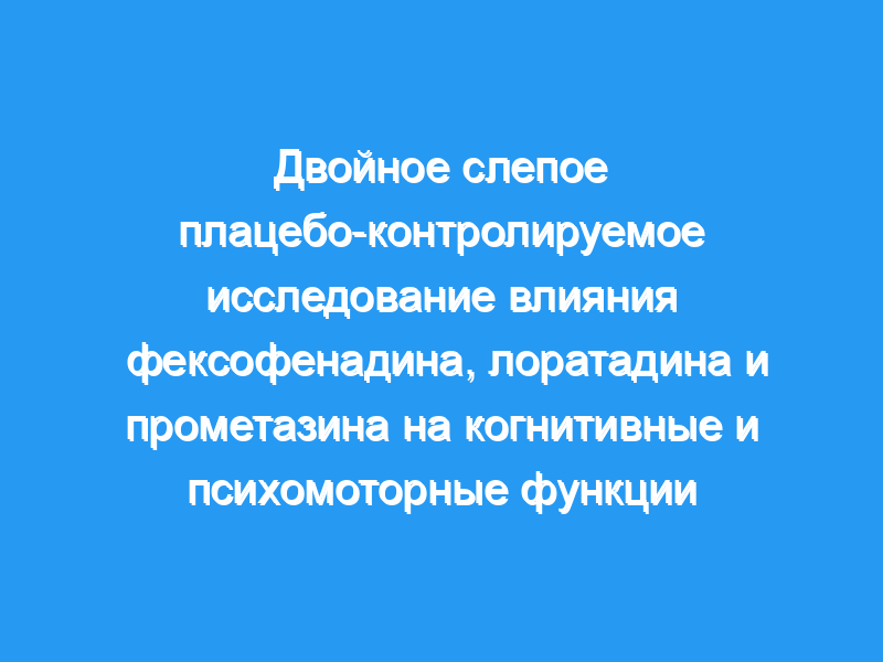 Чтобы оценить, оказывает ли фексофенадин в диапазоне доз от 80 до 180 мг какое-либо разрушительное воздействие на аспекты психомоторной и когнитивной функции по сравнению с плацебо, лоратадином и прометазином, антигистаминным препаратом, который, как известно, вызывает психомоторные и когнитивные нарушения. Двадцать четыре здоровых добровольца получали фексофенадин в дозе 80 мг, 120 мг и 180 мг, лоратадин в дозе 10 мг, прометазин в дозе 30 мг (в качестве положительного внутреннего контроля) и плацебо в шестистороннем перекрестном двойном слепом исследовании. После каждой дозы испытуемые должны были выполнить серию тестов когнитивных функций и психомоторных характеристик через 1,5, 3, 6, 9, 12 и 24 часа после приема. Тестовая батарея включала критическое слияние мерцаний (CFF), время реакции выбора (CRT) и оценку субъективного седативного эффекта (LARS). Общий уровень активности контролировался с помощью актиграфов, установленных на запястье, в течение каждого из 24-часовых экспериментальных периодов.