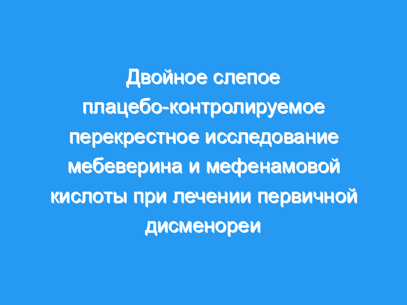 Университетские медицинские центры в Великобритании. Пациенты: Шестьдесят четыре женщины, страдающие первичной дисменореей, которые испытывали боль во время каждого менструального цикла. Вмешательство: Дозировка составляла две капсулы мебеверина, мефенамовой кислоты или плацебо три раза в день. Каждая капсула мебеверина содержала 135 мг мебеверина гидрохлорида, а каждая капсула мефенамовой кислоты содержала 250 мг мефенамовой кислоты. Парацетамол (до 2 х 500 мг) разрешался, при необходимости, в качестве спасательной анальгезии. Измерения и результаты: Подробная информация о тяжести боли, тошноте, вздутии живота и нарушении повседневной деятельности была записана с помощью оценок врача и дневников пациентов. Пациенты указали свои предпочтения в лечении после трех циклов. Мебеверин и мефенамовая кислота превосходили плацебо в снижении тяжести боли (р менее 0,01 и р менее 0,02 соответственно), а мефенамовая кислота снижала уровень нарушения нормальной деятельности (р менее 0,01). Количество сообщенных одновременных эффектов составило пять во время лечения мефенамовой кислотой и по одному во время лечения плацебо и мебеверином.