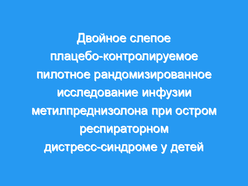 Терапия низкими дозами метилпреднизолона у взрослых с ранним острым респираторным дистресс-синдромом уменьшает системное воспаление, продолжительность искусственной вентиляции легких и продолжительность пребывания в отделении интенсивной терапии. Мы сообщаем о пилотном рандомизированном исследовании лечения глюкокортикоидами при раннем остром респираторном дистресс-синдроме у детей. Дизайн: Двойное слепое плацебо-контролируемое рандомизированное клиническое исследование.