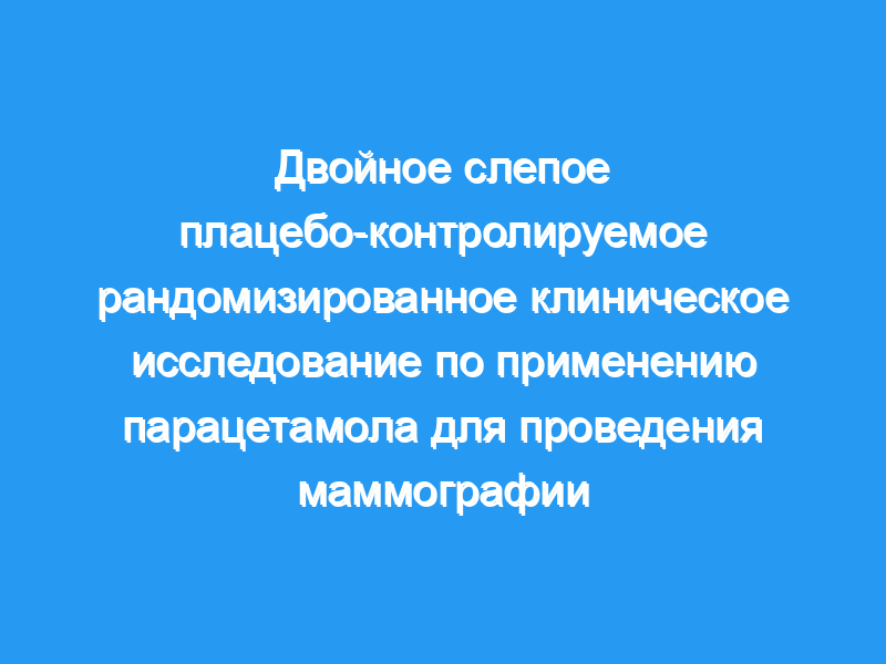 Рандомизированное двойное слепое плацебо-контролируемое исследование, в котором тестировался парацетамол для уменьшения боли и дискомфорта во время маммографии. Триста пациентов, пришедших на скрининговую маммографию, были рандомизированы для этого исследования. Использовалась анкета из 2 частей: в первой были вопросы, касающиеся идентификации пациента и факторов, связанных с болью во время маммографии, а во второй задавались вопросы о шкале дискомфорта (нет дискомфорта, неудобно, очень неудобно, невыносимо) и боли (аналогичная линейная шкала) во время маммографии. Каждый пациент получал 1000 мг парацетамола или плацебо. После этого каждый пациент заполнил вторую часть анкеты. Шесть пациенток были исключены из анализа, в результате чего в группе парацетамола было 149 человек, а в группе плацебо — 145.