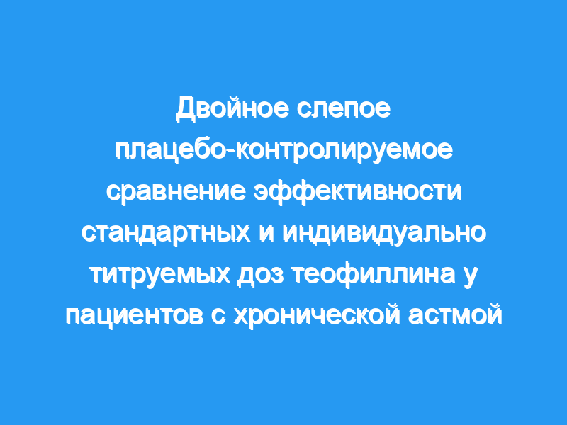 Сорок взрослых пациентов с хронической астмой завершили 3-месячное двойное слепое перекрестное исследование для сравнения эффекта теофиллина с замедленным высвобождением, принимаемого как в фиксированной дозе 300 мг два раза в день (стандартная), так и в индивидуально подобранной дозе (титруемой) с плацебо.