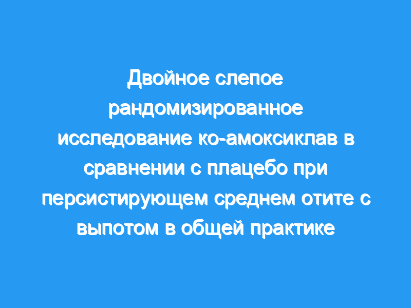 433 ребенка в возрасте от 6 месяцев до 6 лет с ОМЕ из 57 врачей общей практики вступили в 3-месячный период бдительного ожидания. Из 223 (52%) пациентов с персистирующим двусторонним ОМЕ 162 были рандомизированы двойным слепым методом для получения суспензии амоксиклава (20 мг/кг амоксициллина, 5 мг/кг клавуланата калия) или соответствующего плацебо перорально три раза в день в течение 14 дней. Все пациенты также получали ксилометазолин 0,25% противозастойные носовые капли три раза в день. Из 61 не рандомизированного исследования 13 детей были направлены к ЛОР-хирургу, а в 48 случаях родители отказались от согласия. Основными показателями исхода были стойкие ОМЕ в обоих ушах и в одном или обоих ушах, которые оценивались клинически и с помощью тимпанометрии. Анализ проводился по принципу «намерение лечить». Результаты: 79 детей в группе лечения и 70 в группе плацебо были проанализированы на предмет эффективности. 3 отказались от приема ко-амоксиклава (2 отказались от наблюдения, 1 из-за побочных эффектов), 6 отказались от приема плацебо (5 и 1 соответственно). Кроме того, 4 тимпанограммы не поддавались интерпретации в контрольной группе. Соответствие требованиям составило более 90% в обеих группах. Персистирующий ОМЕ в обоих ушах и в одном или обоих ушах был обнаружен со значительно более низкими показателями в группе, принимавшей ко-амоксиклав, чем в контрольной группе при 2-недельном наблюдении: 53 против 84% и 77 против 93% соответственно. Коэффициенты шансов, скорректированные с учетом пола, аденоидэктомии в анамнезе и инфекции верхних дыхательных путей при последующем наблюдении, составили 0,25 (95% ДИ 0,11, 0,58, р = 0,001) и 0,30 (0,10, 0,89, р = 0,03) соответственно. Родители детей в группе, принимавшей амоксиклав, сообщали о значительно большем количестве побочных эффектов, чем у детей контрольной группы (44 против 22%, р = 0,03). Побочные эффекты были в основном желудочно-кишечными и умеренными. Интерпретация: Наше исследование в условиях общей практики подтвердило положительный краткосрочный эффект лечения антибиотиками при персистирующей инфекции среднего уха. Перед направлением к ЛОР-хирургу дети с персистирующим ОМЕ, обращающиеся к врачам общей практики, могут быть рассмотрены для такого лечения, в зависимости от конкретного ребенка и возможных неблагоприятных последствий.