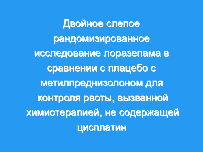Пятьдесят три пациента с раком молочной железы, получавшие адъювантную химиотерапию, приняли участие в двойном слепом рандомизированном исследовании лоразепама в дозе 2,5 мг перорально до химиотерапии и повторном через 12 часов (группа А) по сравнению с плацебо (группа В) с метилпреднизолоном (MPN) в дозе 375 мг в 3 равных дозах: 125 мг внутривенно.