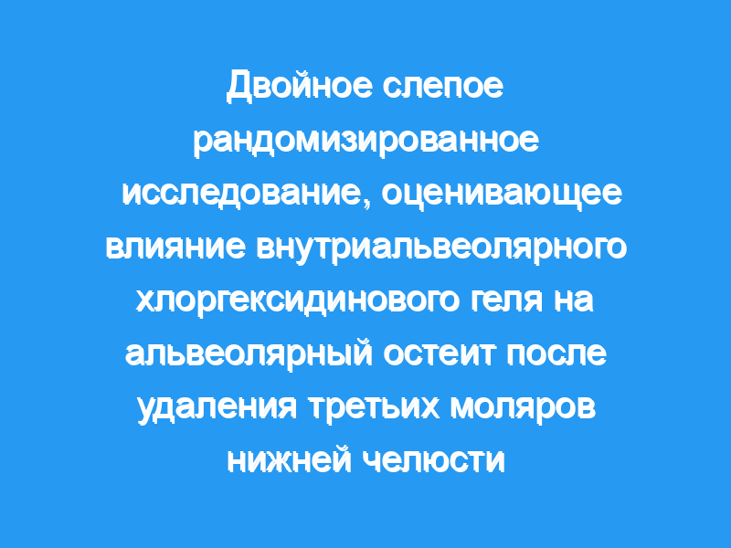 Было проведено двойное слепое рандомизированное исследование, чтобы оценить, существует ли внутриоперационное- альвеолярное введение CHX уменьшает АО. Для достижения этой цели было изучено удаление и послеоперационное течение 100 пораженных третьих моляров нижней челюсти. Девяносто семь процентов прооперированных зубов имели диагностированную патологию. Извлеченные альвеолы обрабатывали CHX или плацебо. Прием анальгетиков регистрировался в течение 7 дней после операции.