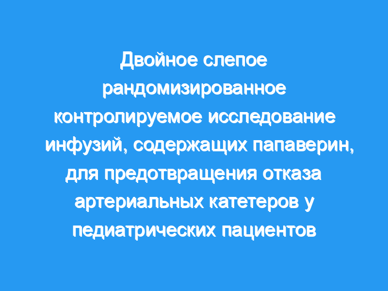 Чтобы проверить эффективность непрерывной инфузии жидкостей, содержащих папаверин, в катетеры периферических артерий для снижения риска отказа катетера. Дизайн: Проспективное двойное слепое рандомизированное контролируемое исследование.