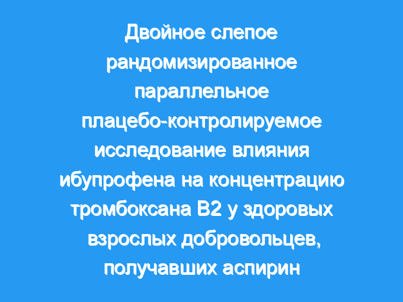 Настоящее исследование было предпринято для определения того, повлияет ли ибупрофен, принимаемый в соответствии с указаниями на этикетке без рецепта, на ингибирование тромбоксана В2 (TXB2), суррогата ингибирования тромбоцитов.
