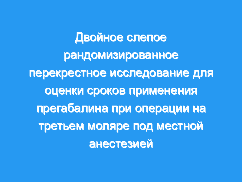 Были набраны пациенты, которым требовалась операция на третьем моляре в 2 отдельных этапа под местной анестезией. Им давали прегабалин в дозе 75 мг либо за 1 час до, либо после их первого хирургического удаления. Затем они получили ту же дозу прегабалина при повторном хирургическом извлечении, но те, кто получал его до операции, получали его после операции, и наоборот. Послеоперационный анальгетический эффект оценивали в послеоперационные часы 2, 4, 8, 12, 24, 48, и 72. Также оценивались время до первого приема анальгетика, потребление анальгетика и побочные эффекты.