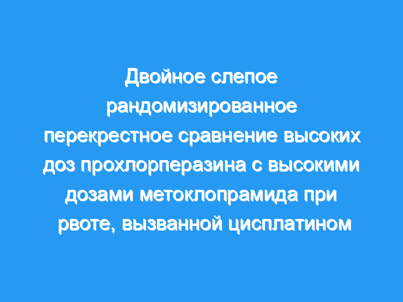 Это двойное слепое рандомизированное перекрестное исследование было проведено для сравнения безопасности и эффективности инфузии высоких доз прохлорперазина и дексаметазона (HDPD) с эффективной и безопасной комбинацией высоких доз метоклопрамида и дексаметазона (HDMD) в борьбе с вызванной цисплатином рвотой.